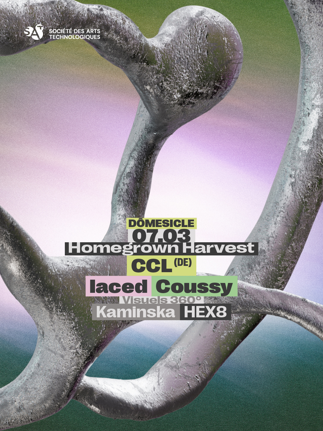 A Dômesicle co-presented with underground electronic collective Homegrown Harvest, for lovers of house, techno, bass, and breaks — featuring the ultra-talented Berlin DJ CCL and our local gems laced and Coussy.