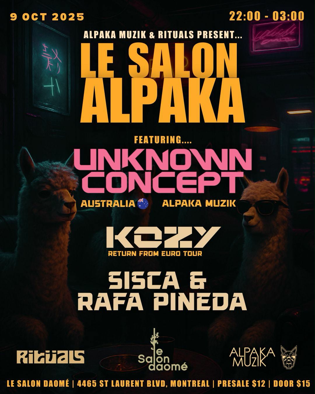 Headlining the night is Australian artist Unknown Concept — AlpaKa MuziK’s very own A&R and world-class producer, known for delivering cutting-edge sets that push boundaries.