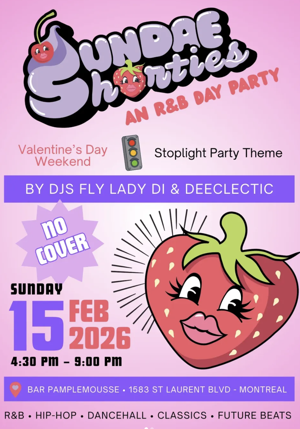 WE'RE SO BACK 🍨🍓🍒Back early and monthly, starting Sunday, February 15!On Valentine’s Weekend, we’re celebrating with a Stoplight Party🚦Grab a wristband on arrival to show your vibe: single, taken, or it’s complicated 😛 @djflyladydi and @deeclectic will be mixing on the decks while you all mingle! Pull up solo, with a Valentine, or with the crew.. no pressure, just vibes ✨
